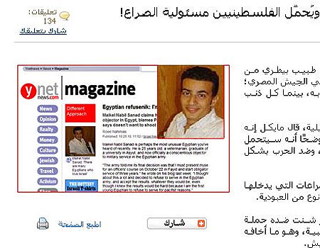 התגובה שלא איחרה לבוא: זמן קצר לאחר הפרסום ב-ynet של הראיון עם הצעיר המצרי הפרו-ישראלי, מייקל נביל סנד, הוא זכה למטר של אש וגופרית מכלי תקשורת במצרים ומחוצה לה.