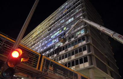 מנוף כיבוי מונף צמוד לבניין העירייה, הערב (צילום: ירון ברנר)