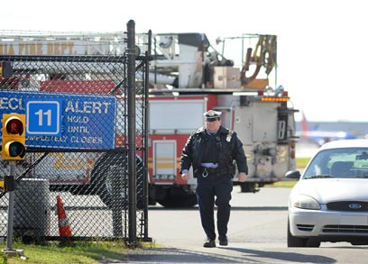 בודקים מטוס בפילדלפיה, הערב. נעצרו משלוחים מתימן (צילום: AFP)