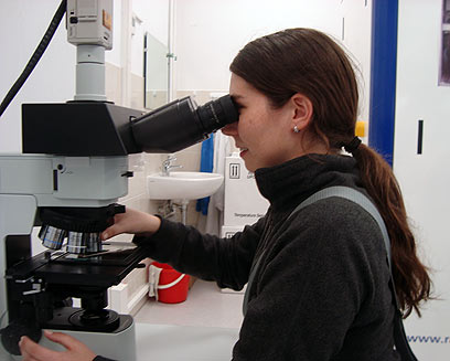 מנדלוביץ' מול המיקרוסקופ. "הגדלתי והקטנתי והזזתי" (צילום: אלעד דקל)