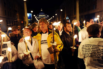 מאות מפגינים, שנוצלו מינית על ידי כמרים בהיותם ילדים, השתתפו הערב (יום א') בצעדת לפידים לקריית הוותיקן. המפגינים, שהגיעו לצעדת המחאה ברומא מעשר מדינות, מחו על דרך הטיפול של הכנסייה הקתולית בריבוי המקרים של תקיפה מינית של ילדים על-ידי אנשי כמורה.