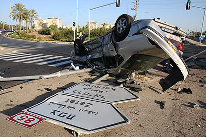 שברי מכונית השברולט, הבוקר בכניסה לעכו (צילום: אבישג שאר-ישוב)