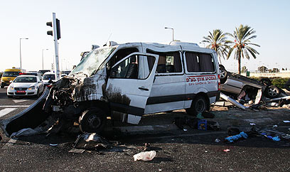 רכב ההסעות בזירת התאונה, הבוקר (צילום: אבישג שאר-ישוב)