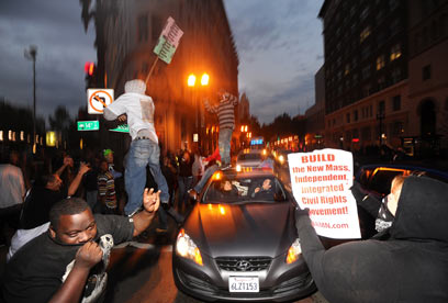 יותר מ-150 תושבים שחורים נעצרו הבוקר (שבת) בעיר אוקלנד שבמדינת קליפורניה, אחרי שהתפרעו במחאה על החלטת בית משפט לגזור שנתיים מאסר בלבד על קצין משטרה לבן שירה למוות בגבר שחור לא חמוש. המפגינים שברו חלונות ראווה, השחיתו מכוניות, אוטובוסים וגדרות בדרישה להחרפת העונש.