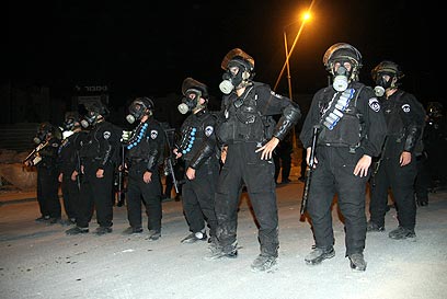 מאות שוטרים ליוו את המבצע הלילי ברהט (צילום: רועי עידן)