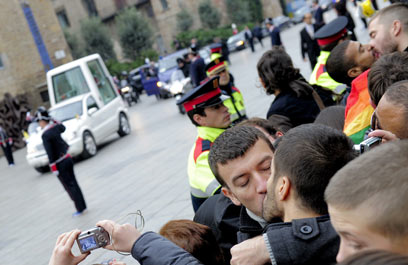 הומואים התנשקו מול האפיפיור בספרד: "פדופיל!"