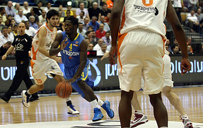 ליאור אליהו, מחפש את הדרך לסל של ראשל"צ (צילום: דרור עינב)