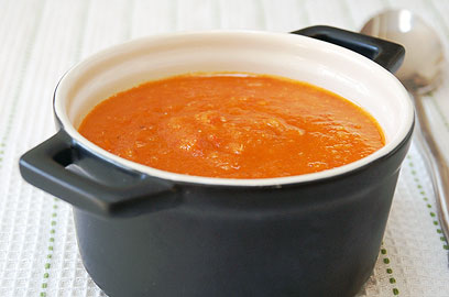 מרק עגבניות שרופות, עדשים כתומות ופלפל חריף