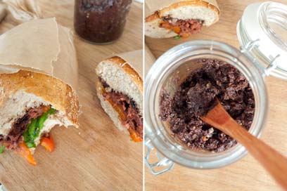 טפנד זיתים שחורים (מתכון בהמשך), או לקנות מוכן