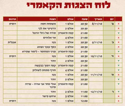 "הקטלוג, המעוצב בדומה לקטלוגים הקלאסיים של הקאמרי והבימה, מכיל את כל ההצגות שיעלו בחודשיים הקרובים, כולל מיקומן, התאריך ושעת ההצגה. לצד כל הצגה מופיע סימון אדום ב-X להצגה בה משתתפים אומנים סרבנים. הצגות אחרות, כאלה שבהם לא ביצעו אומנים אפליה בין הופעות בחלקי ארץ שונים מסומנות ב-V. גם אנחנו יודעים לעשות חרם".