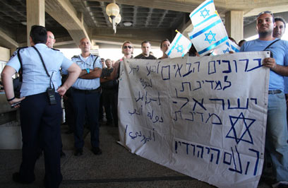 סטודנטים מ"אם תרצו" הפגינו מול חברי בל"ד (צילום: אבישג שאר-יישוב)