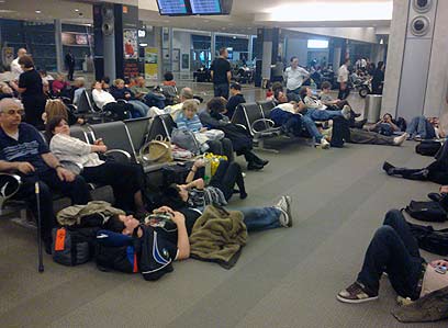 גם הממריאים יעדיפו לשכוח את הלילה הערפילי הזה. בטיסות לצפון אמריקה, שהן כמעט היחידות שממריאות מישראל עוד הרבה לפני שהשמש זורחת, חלו עיכובים משמעותיים. טיסות "אל על" לטורונטו, ניו יורק, לוס אנג'לס וניוארק לא יצאו לדרכן בזמן ומאות ישראלים בטרמינל 3 ניסו לתפוס תנומה על המזוודות.