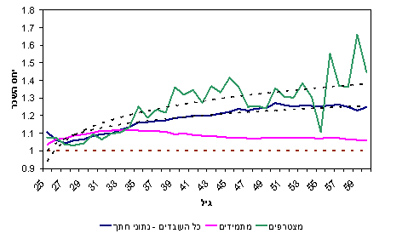 כיצד ניתן להסביר זאת? אצל המצטרפים המצב הפוך והם משפיעים על התוצאה בכללותה; ככל שהגיל עולה כך גדלים פערי השכר בין המצטרפים למצטרפות - בעיקר מגיל 35 ואילך. ככל שהגיל עולה - כך הגברים מצטרפים לתפקידים בכירים יותר בשכר גבוה יותר יחסית לנשים המצטרפות.