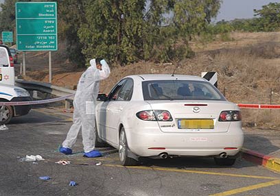 אנשי הזיהוי הפלילי מגיעים לזירה, היום בצהריים (צילום: אבי רוקח)
