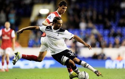 שמאח מנסה להפריע לאקוטו מטוטנהאם בדרבי (צילום: גטי אימג'ס)
