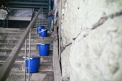 ואכן, בסיור בסוף השבוע באזור קשה שלא להבחין בדליים הרבים המפוזים ברחבי מתחם מנהרות הכותל, שאוספים לתוכם את הטיפות הרבות המחלחלות מבתי הרובע המוסלמי שממעל. "הכל עלול לקרוס פנימה", ממשיך הרב, "הסדרת הניקוז רק תשרת את תושבי הרובע המוסלמי".