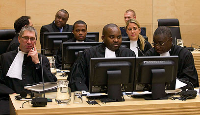 צוות ההגנה של במבה, היום בהאג (צילום: רויטרס)