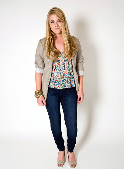רותם לובשת: חולצה פרחונית-זארה, ז'קט- מסימו דוטי, ג'ינס- טופשופ, נעלי עקב- סטיב מאדן