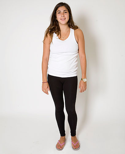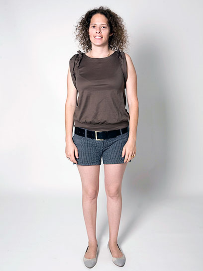 עדנה לובשת: חולצה- שרון ברונשר, גופיה- זארה, שרשרת- דיוה, עגילים- אמארו, חצאית- טופשופ, נעליים- אלדו, גרביונים- דלתא