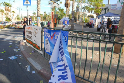 פתקי הצבעה מפוזרים ברחובות. אווירת בחירות (צילום: הרצל יוסף)