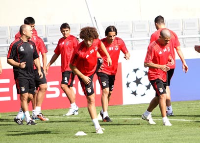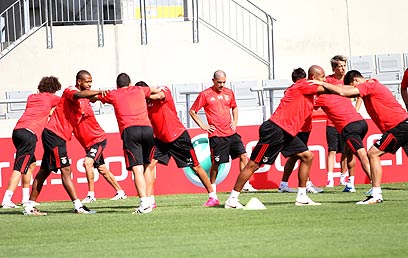 בנפיקה באימון בבלומפילד. מה יהיה הערב? (צילום אורן אהרוני)