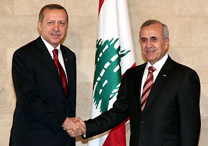 ארדואן ונשיא לבנון "טורקיה תפעל למנוע מלחמת אחים" (צילום: AP)