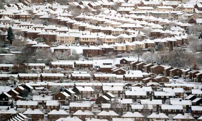 הגגות הלבנים של ניוקאסל. החזאים צופים שבועיים שלג (צילום: AP)