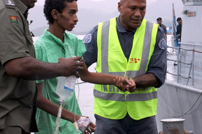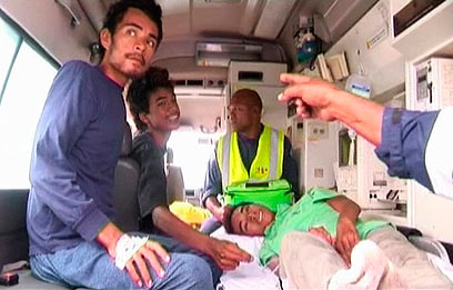 אחד הנערים מובל לטיפול רפואי בניו זילנד (צילום:AP)