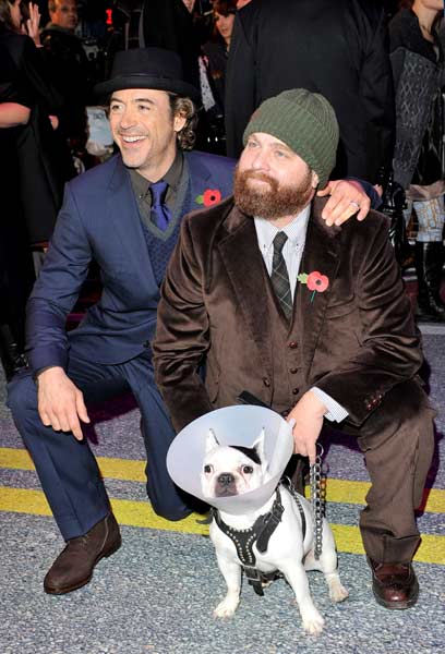דאוני ג'וניור, גאליפיאנאקיס והכלב סאני (צילום: GettyImages)