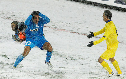 ורי ורי קולד. ארבייטמן בשלג עם לחזר בלטאנוב מלבסקי (רויטרס)