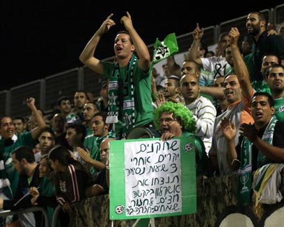 אוהדי מכבי חיפה. יגיעו עם חולצות שחורות כאות אבל (צילום: רועי עידן)