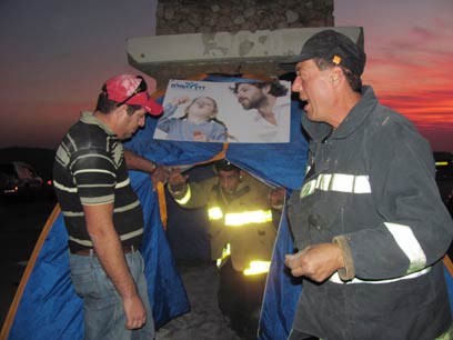 אל תוך אוהל מלח שהוקם בחניון נכנסו הכבאים מר (מור) ליבוביץ' וירון יוסף כדי לנקות את קני הנשימה. חברה המפעילה