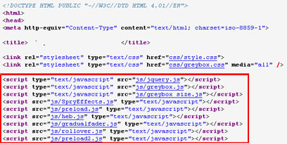 בונה אתרים מקצועי יידע להפריד את הסקריפטים מעמוד ההטמל לעמודים משלהם, ורק לשים אליהם לינק מעמודי האתר:
