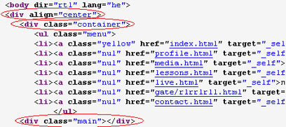 לחילופין, כך נראה קוד של אתר שנבנה באמצעות שכבות, שעיצובן מוגדר ונמצא בקובץ CSS נפרד: