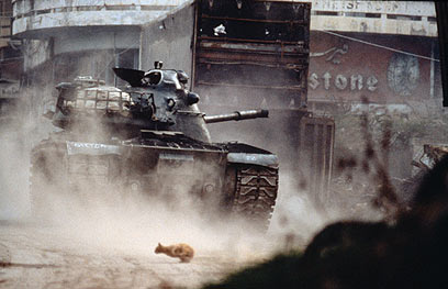 חתול מול טנק של הפלנגות. ביירות, 1984