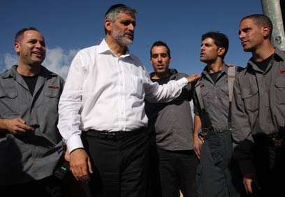 ישי עם כבאים בעוספיה. מחבק, לא מסייע (צילום: אבישג שאר ישוב)