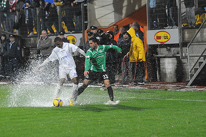 באצטדיון נעשו לא מעט עבודות על מנת למנוע הצטברות מים בכר הדשא לקראת המשחק שייערך ביום שני (21:45). תעלות הניקוז נוקו היטב ומשאבת המים נבדקה מספר פעמים על מנת לוודא כי המים ישאבו מהמגרש. אז כזכור, ניסו עובדי האצטדיון לנקז את השלוליות באמצעות מגבים.