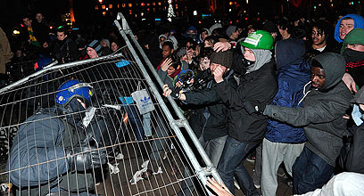 "רוצים את הכסף חזרה". עימותים בלונדון (צילום: AFP)