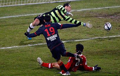 ננה כובש את שער הניצחון מול ואלנסיין (צילום: AFP)