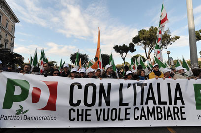 מפגינים נושאים שלט "עם איטליה המעוניינת בשינוי" (צילום:AFP)