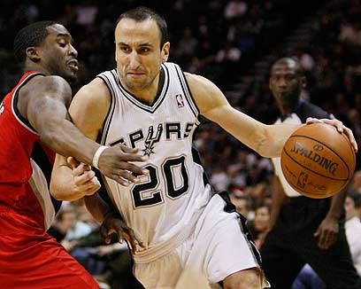 מאנו ג'ינובילי מול ווסלי מאת'יוז. עוד ניצחון לספרס (צילום: AP)
