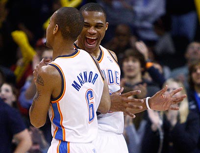 ווסטברוק ומיינור חוגגים ניצחון קליל של אוקלהומה (צילום: רויטרס)