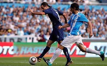 חואן מנואל מרטינס בדרך לשער הראשון של ולס (צילום: רויטרס)