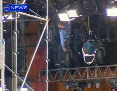השחקן יו ג'קמן נפצע בעינו בעת צילומי התוכנית של אופרה ווינפרי באוסטרליה. ג'קמן, שנכנס לסט בעזרת כבלים שנמתחו מגג בית האופרה המפורסם של סידני אל במת התוכנית, בלם עצמו שלא כראוי במהלך הירידה וגרם לעצמו לחתך בעין. צילומי הספיישל הטלוויזיוני הופסקו וג'קמן קיבל טיפול רפואי שבסופו חודשו הצילומים.