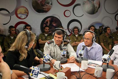משדרים ביחד. קהלני, הרמטכ"ל אשכנזי ודיין באולפן (צילום: באדיבות דו"צ)