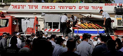 ארונו של דני חייט על רכב כיבוי (צילום: חגי אהרון)