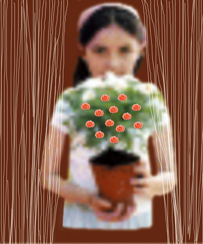 שעור באהבה מספר 11 (פרחים מרחפים), אילת השחר כהן, טכניקה מעורבת, 2005. מתוך התערוכה לחם ושושנים המוצגת בשבת 25 בדצמבר, במנשר לאמנות, תל אביב