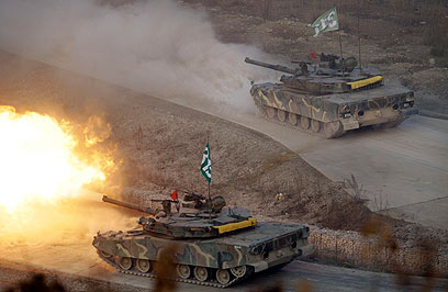 טנקים דרום קוריאנים מתאמנים באש חיה (צילום: רויטרס)