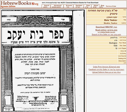 העיפו מבט לרגע בגרסת 2001 של האתר HebrewBooks.org. כותרתו צועקת "60 ספרים בפורמט PDF!" והאתר מעלה על נס דברים פיקנטיים כמו שו"ת קוקה קולה או השו"ת על הטיטניק. כעת הסתכלו באתר בגרסתו הנוכחית: 44,811 ספרי יהדות והיסטוריה יהודית בעברית, אפשרויות אחזור מתקדמות, חיפוש OCR ועוד. היקף בלתי נתפס של חומר מאוצר הספר העברי לדורותיו, והכול חופשי לשימוש. ממש גוגל Books העברי.
