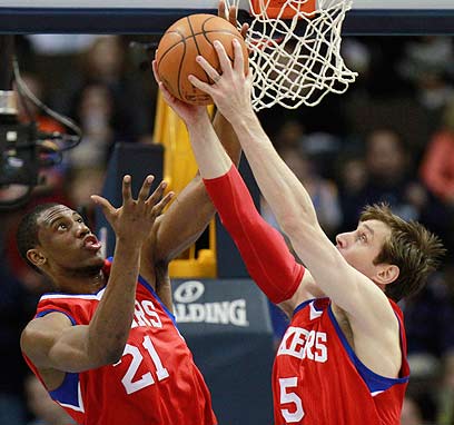 ת'אדיוס יאנג ואנדרס נוצ'יוני. הסיקסרס ניצלו את המשבר של דנבר (AP)